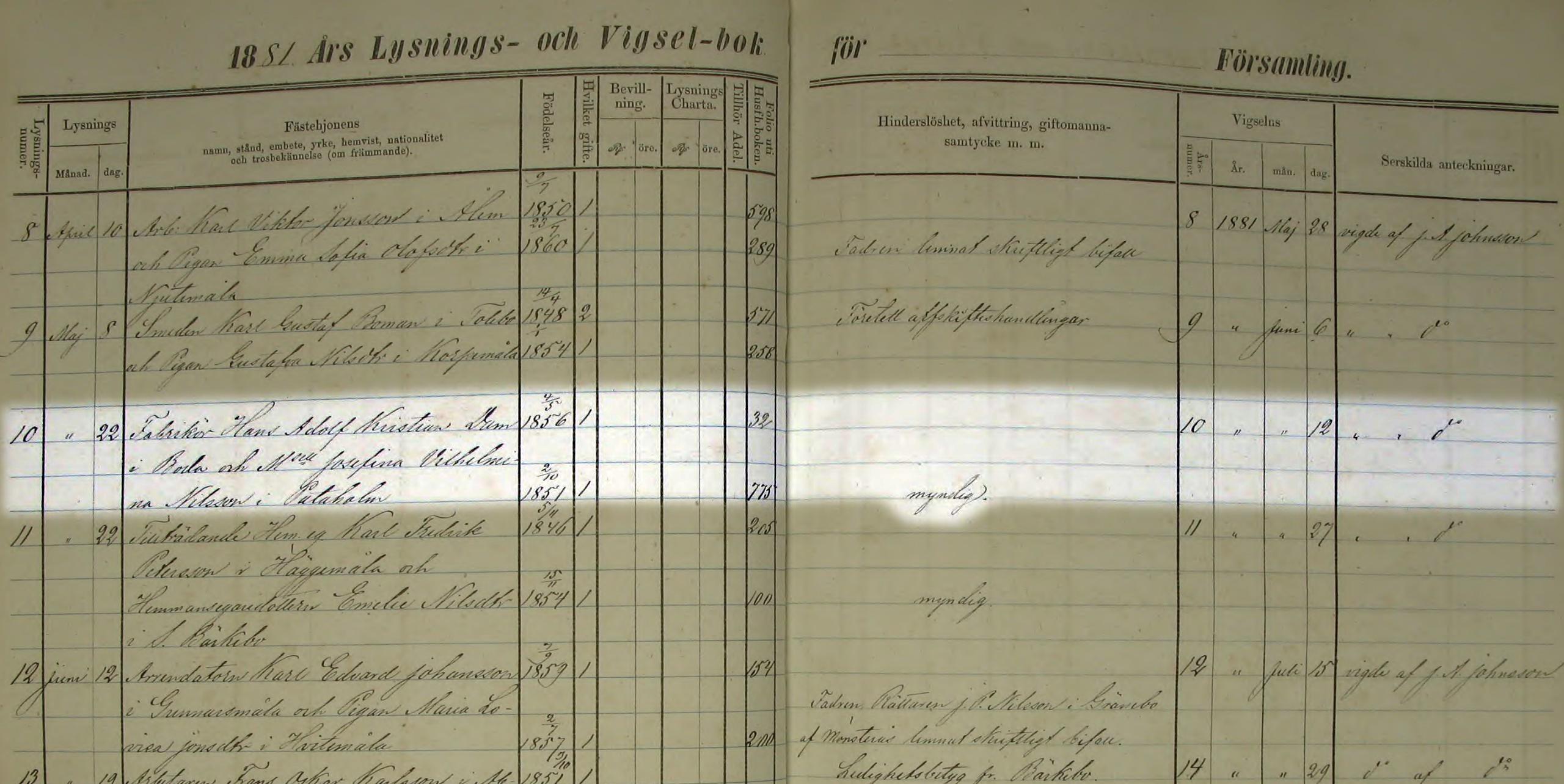 Ålem vigselbok 1881 EI-3