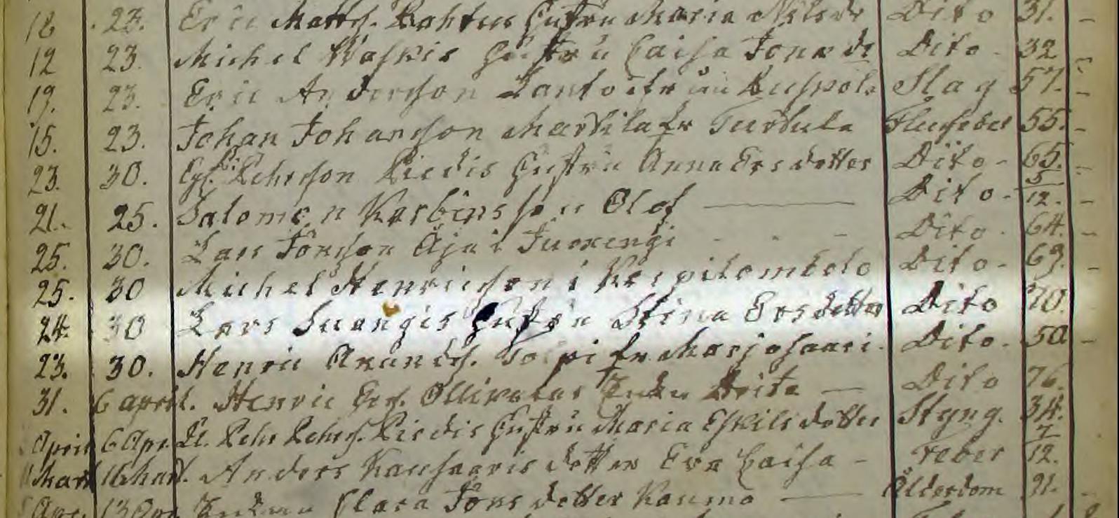 Övertorneå döda mars 1800