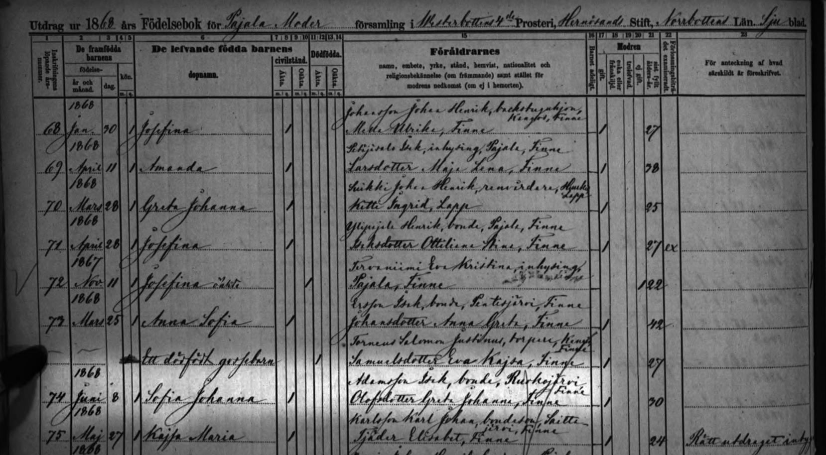 Pajala födda 1868 SCB