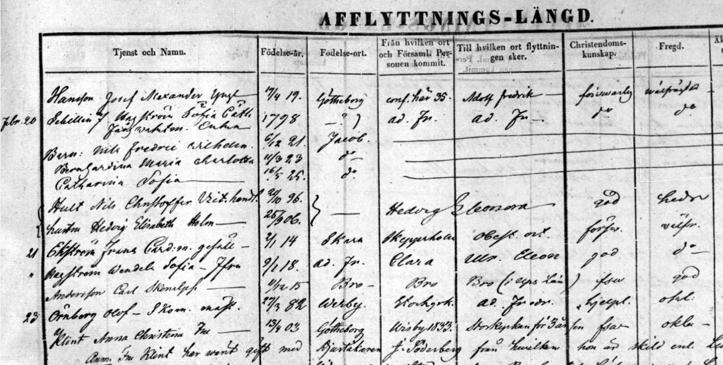 Jakobs församlings utflyttningslängd 1838, sid73.