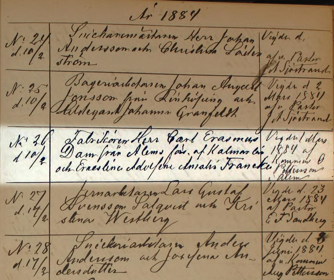 Giftermål, Familj för Dam, Carl Erasmi och Francke, Ernestine Adolfine Amalia