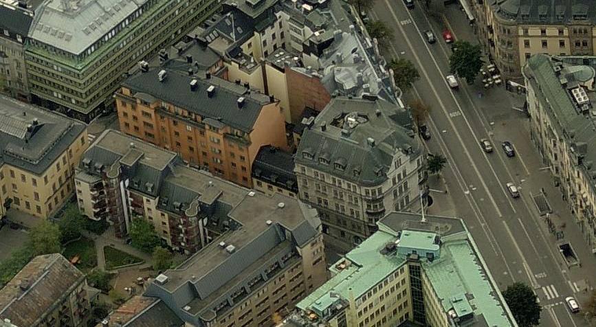 Det lilla förskrämda huset i bildens mitt är Riddargatan 4.