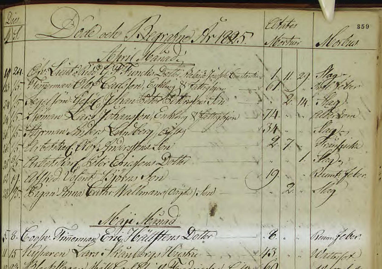 Göteborgs Karl-Johan dödbok 1825