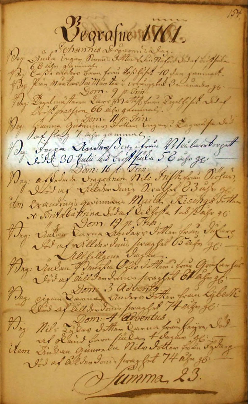 Sövde begrafne 1761