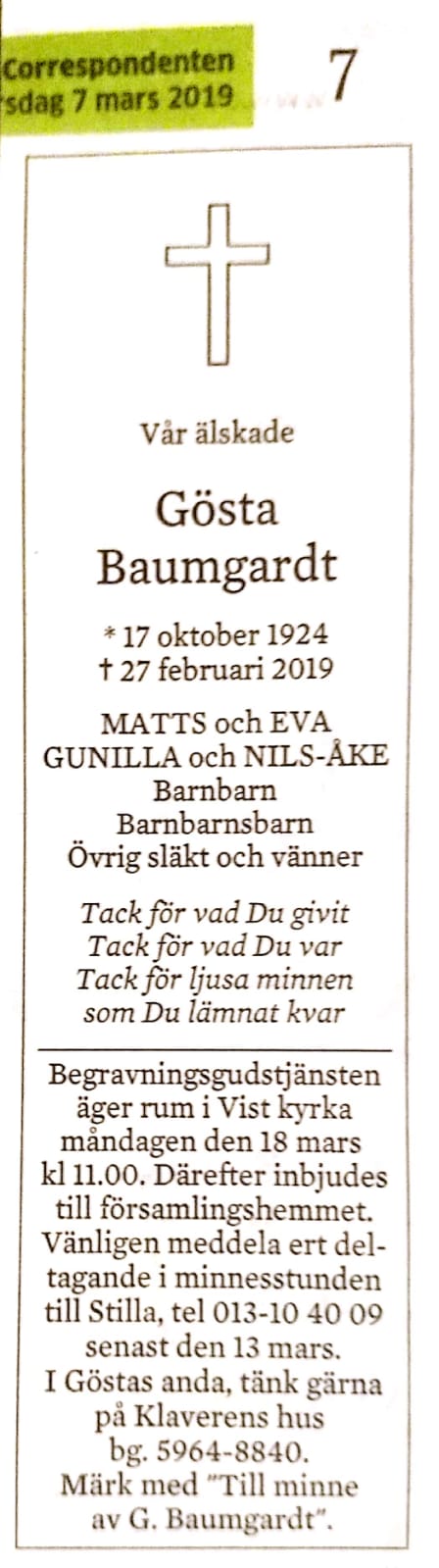 GöstaDödsannons