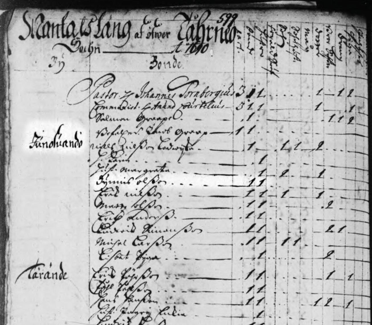 Övertorneå Mantalslängd 1690 Junosuando