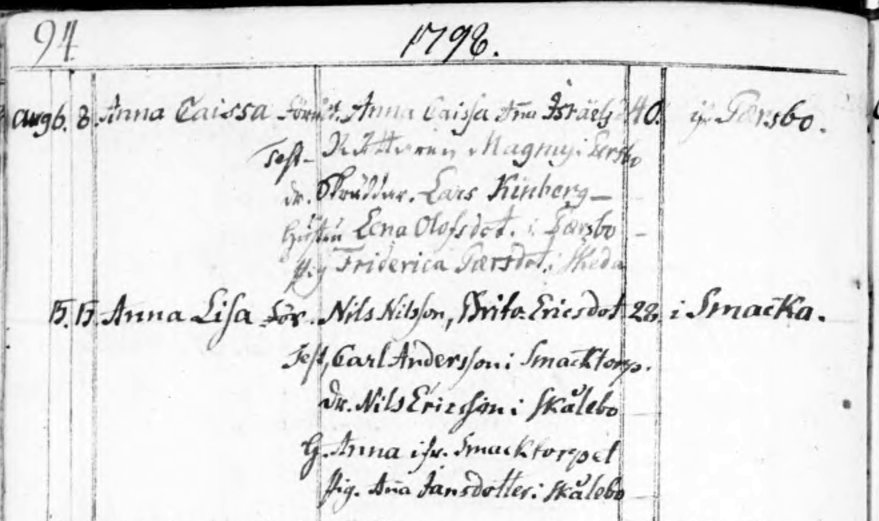 Skeda parish birth record 1798