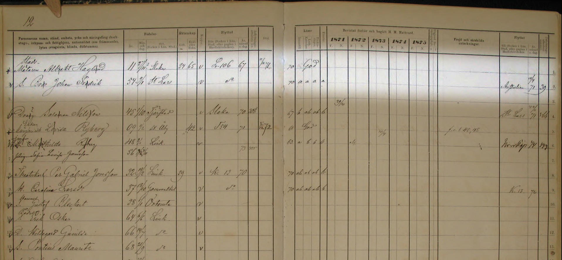 Linköpings domkyrkoförsamling husförhörslängd AI:64 1871-1875 K12