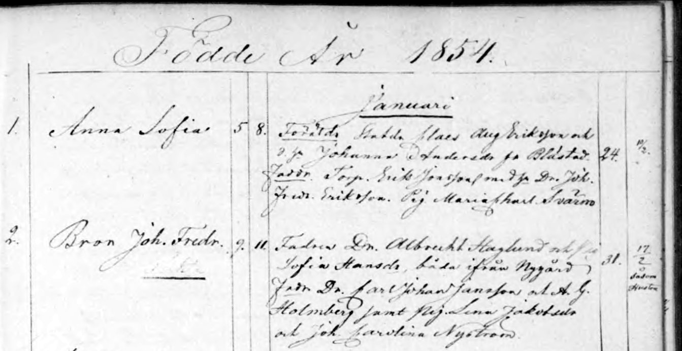 Under the name, an underlined word has been erased: "Oäkta" [out of wedlock]