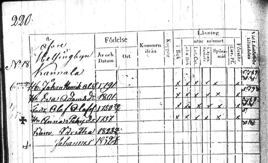 Finska Övertorneå husförhörslängd 1826-32 Kannala Helsingbyn