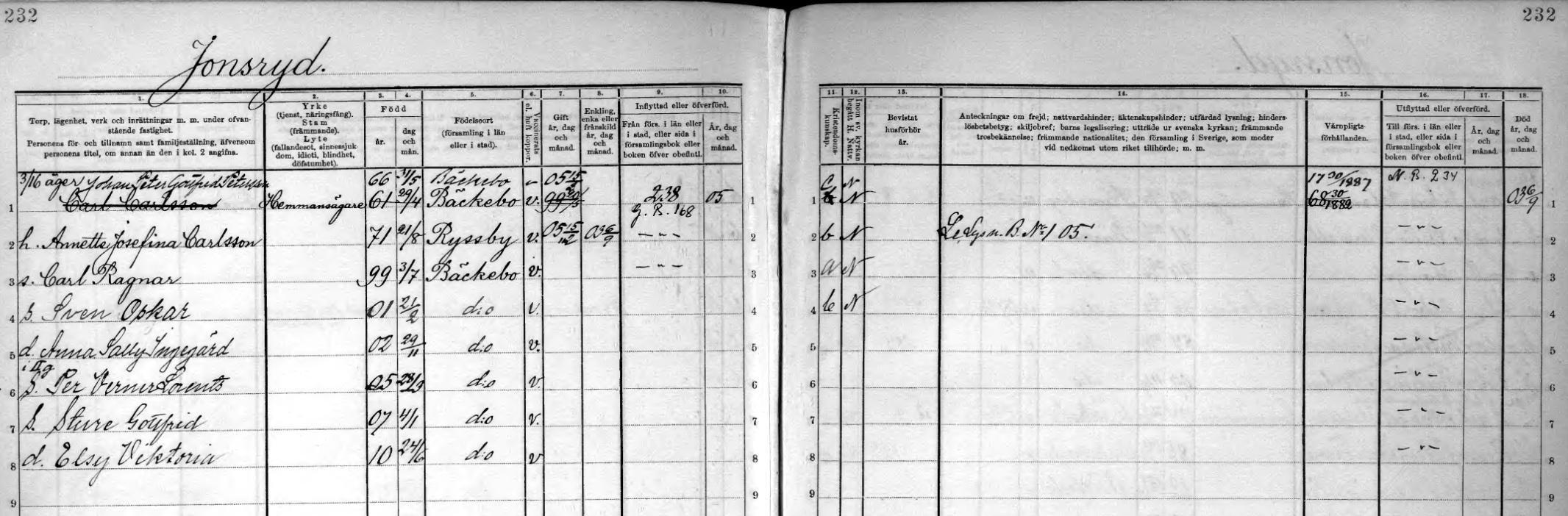 Bäckebo församlingsbok 1900-16 sid 232 Jonsryd