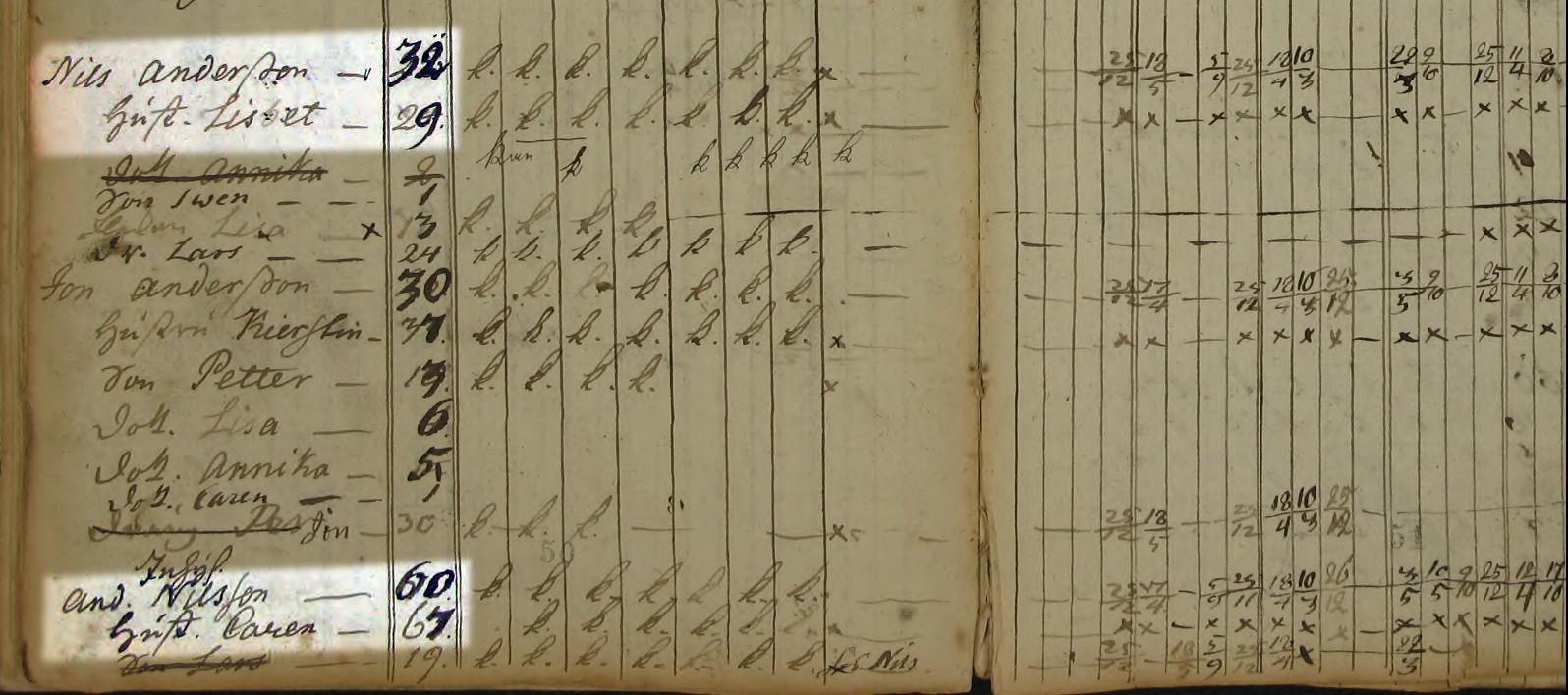 Eftersom Nils Andersson föddes 30/11 1729 verkar personernas ålder gälla år 1761 eller 1762.
