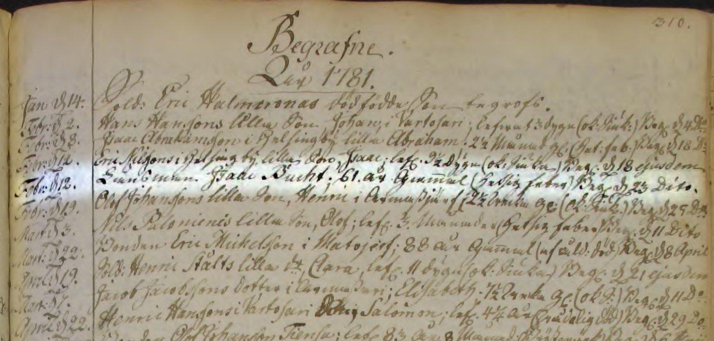 Hietaniemi dödbok 1781 (C:1 sid.310)