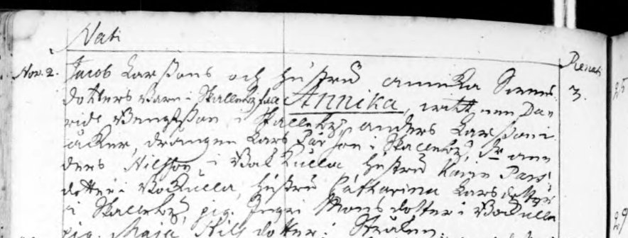 Kristberg birth record Nov. 1751
